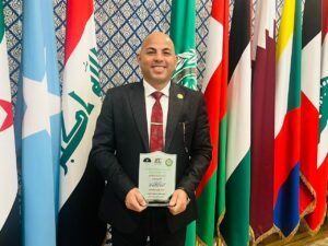 تكريم جامعة الدول العربية للمهندس هيثم حسين تقديراً لجهوده في خدمة النازحين وإعادة الإعمار